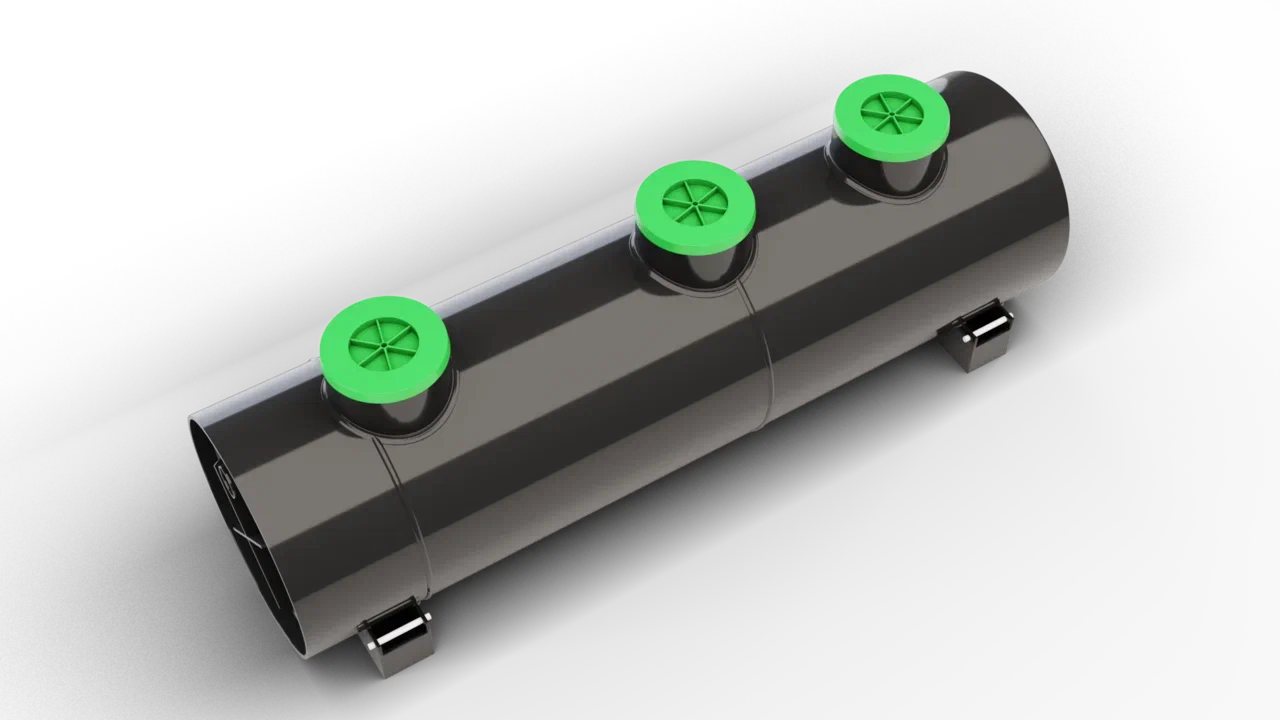 Септик также оснащен системой аэрации и эрлифтов с компрессором, которая позволяет повысить степень очистки септика, что позволит еще реже обслуживать систему почвенной доочистки (дренажную траншею или колодец). Компрессор входит в комплект поставки.
